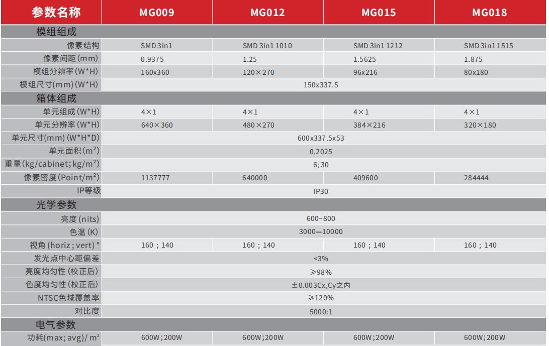MG 系列定位于主流小间距产品, 600mm 宽度和 16 : 9 宽高比,具有全前维护的特性,降低了客户使用门槛。 MG 系列采用了极简设计理念,将米兰milan小间距产品的多年设计经验浓缩成 MG 的核心性能中,在保证高质量视频显示效果的同时,降低了客户总体拥有成本。外观经过精心设计,在优美的外形下包容了关键组件的同时,还添加了功能检测功能,同时保证系统的良好散热。 MG 可选电源备份,标配信号环路备份。