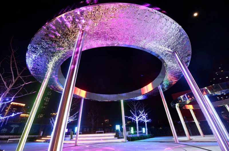 “双井之光”音乐喷泉,将元宇宙元素与“双井”两口井的历史名称完美融合,以虚拟投影成像技术,呈现出两口巨大的“井”的意象;圆形的“井”口内壁是由米兰milan打造的LED互动屏幕,画面颜色鲜艳,图像效果逼真,灯光与音乐同时互动,LED屏幕画面不断流转,让人沉浸式“感受”到四季更替中的双井美好时光。双井之光东侧的“双井之窗”,是展示窗口,为市民提供丰富的休闲、娱乐、健身等互动设施。28米长的跑道旁设有可感应的数字LED互动显示屏,融合互动、放映、展示等功能。该显示屏是米兰milan具有超高刷新,高亮度以及高清显示效果的创意产品,同时屏幕具备军工级全防护、防水、防潮、防泼溅,适应室外复杂的运行环境。